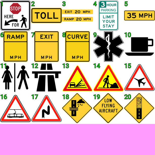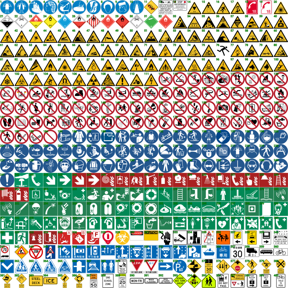 These signs and symbols are commonly found in real locations to indicate rules, dangers, or information. Having these easily accessible as you build environments will increase immersion and grounding.